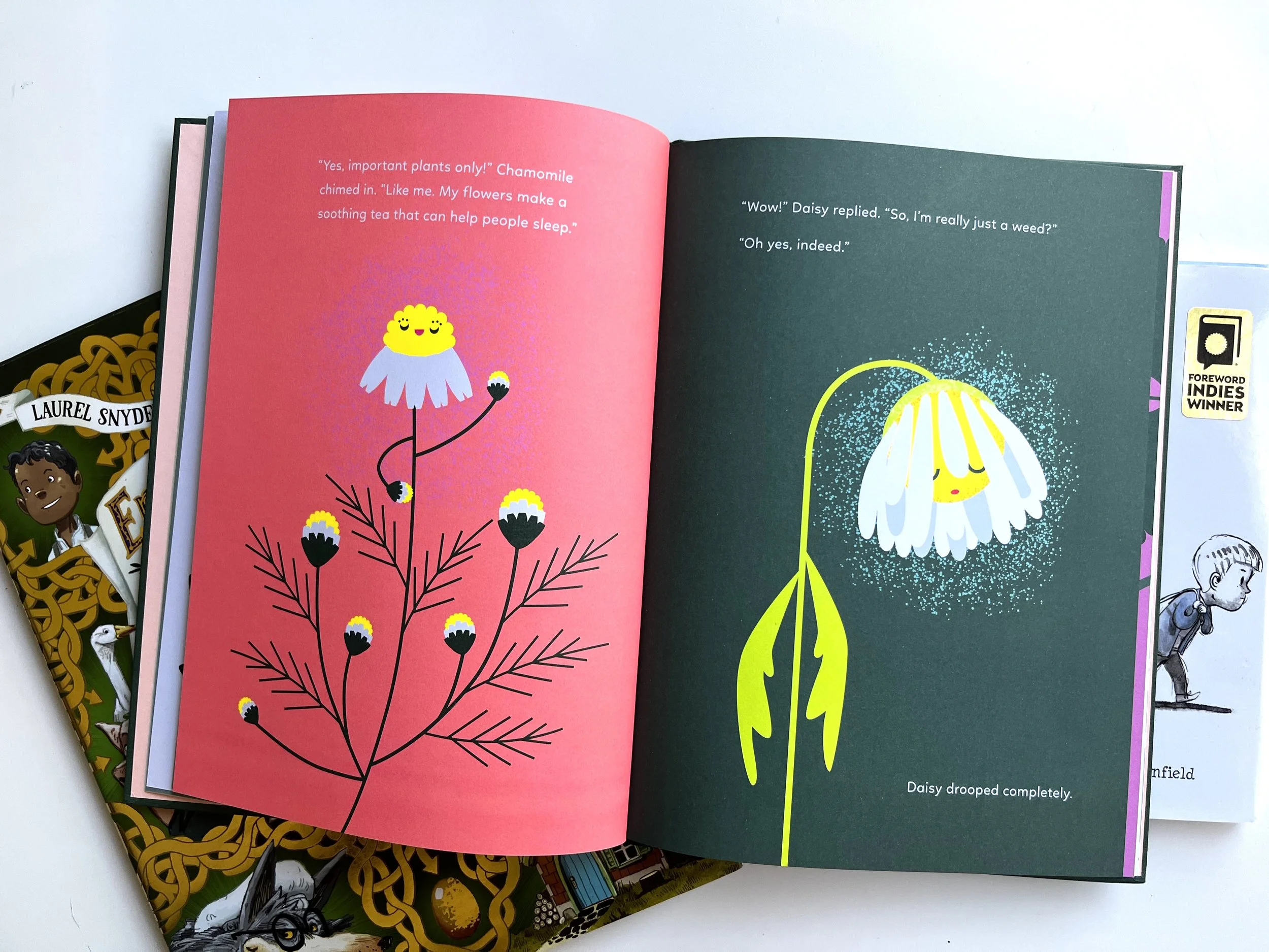 Wildflower is also much more than a pretty face, because it’s a very cute and original story as well. Daisy’s feelings are hurt when she’s informed by Rose that some flowers are planted on purpose and some are weeds. It’s a very clever framing for talking about belonging, acceptance, self-confidence, and empathy. It’s also wonderful for little green thumbs out there. For instance, my daughter recently learned about milkweed and how important it is for monarch butterflies, and she was excited to see Milkweed make an appearance as a character!