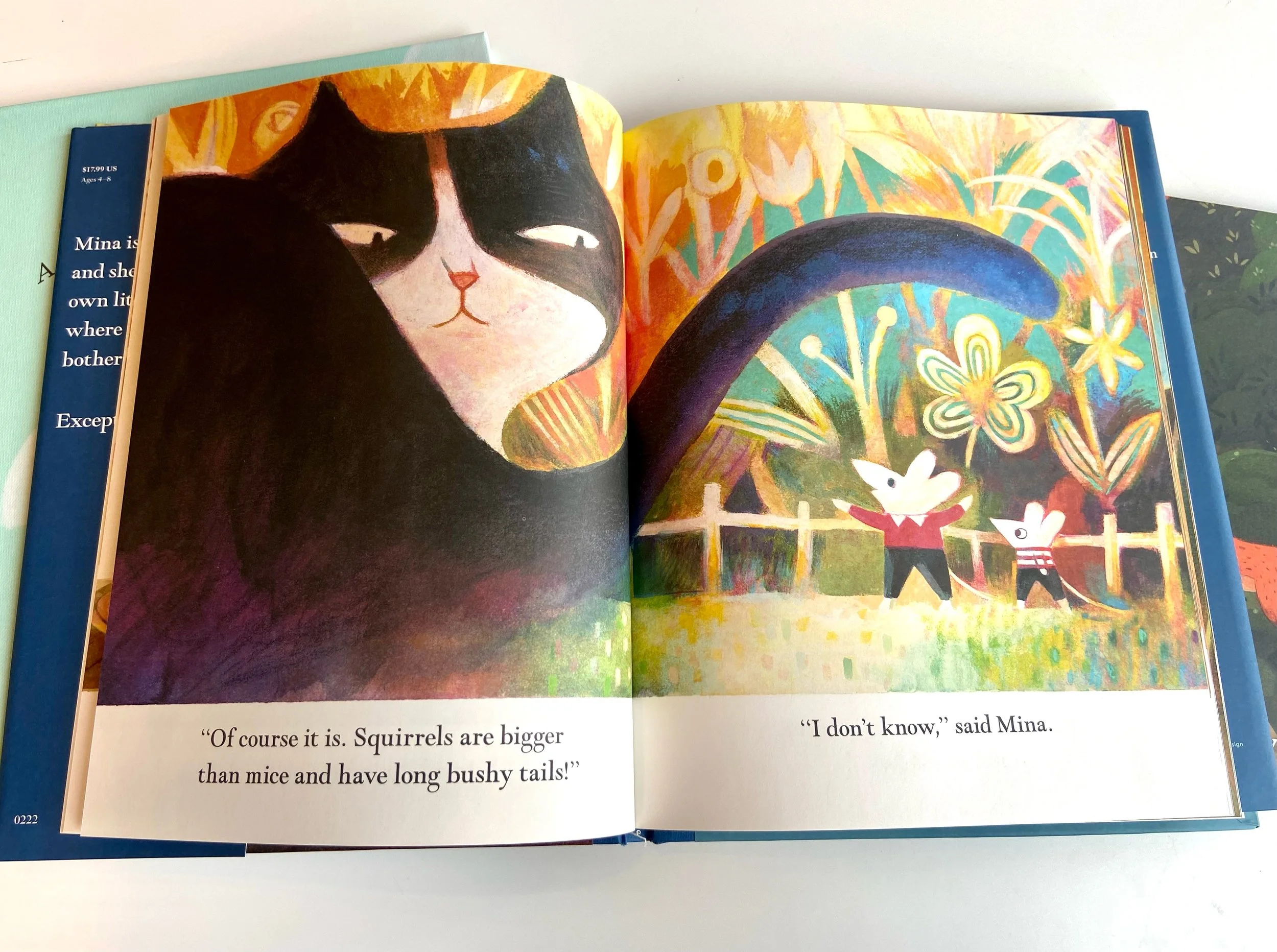 Mina is about a mouse whose father adopts a squirrel, but the squirrel is in fact a cat. The art is beautiful and in the same unique Forsythe style that brings a smile to our face. And there are really wonderful and memorable moments of humor that will leave a lasting impression on the kids. In many ways this is my very favorite kind of picture book, and it’s an absolute delight.